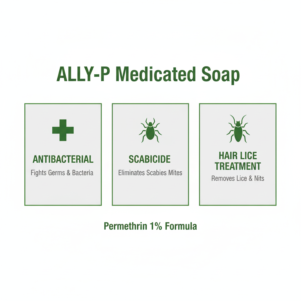 Permethrin 1% ALLY-P Antibacterial Medicated Soap