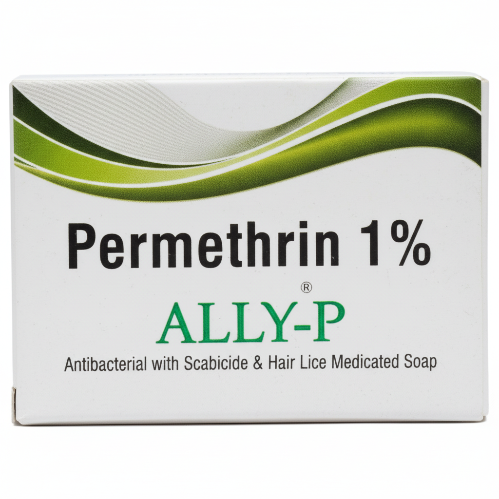 Permethrin 1% ALLY-P একটি মেডিকেটেড অ্যান্টিব্যাকটেরিয়াল সাবান, যা স্ক্যাবিস (খোস-পাঁচড়া) ও হেয়ার লাইস (উকুন) সমস্যায় ব্যবহৃত হয়। এটি ত্বক পরিষ্কার করে জীবাণু নিয়ন্ত্রণে সহায়তা করে এবং স্কিন ইনফেকশন কমাতে সাহায্য করে।